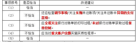 问题 (2017年)ABC会计师事务所的A注册会计师负责审计甲公司2016年度财务报表,与货币资金审计相关的部分事项如下: (1)A注册会计师认为库存现金重大错报风险很低,因此,未测试甲公司财务主管每月末盘点库存现金的控制,于2016年12月31日实施了现金监盘,结果满意。 (2)对于账面余额与银行对账单余额存在差异的银行账户,A注册会计师获取了银行存款余额调节表,检查了调节表中的加计数是否正确,并检查了调节后的银行存款日记账余额与银行对账单余额是否一致,据此认可了银行存款余额调节表。 (3)因对甲公司管理层提供的银行对账单的真实性存有疑虑,A注册会计师在出纳陪同下前往银行获取银行对账单,在银行柜台人员打印对账单时,A注册会计师前往该银行其他部门实施了银行函证。 (4)甲公司有一笔2015年10月存入的期限两年的大额定期存款。A注册会计师在2015年度财务报表审计中检查了开户证实书原件并实施了函证,结果满意,因此,未在2016年度审计中实施审计程序。 (5)为测试银行账户交易入账的真实性,A注册会计师在验证银行对账单的真实性后,从银行存款日记账中选取样本与银行对账单进行核对,并检查了支持性文件,结果满意。 要求: 针对上述第(1)至(5)项,逐项指出A注册会计师的做法是否恰当。如不恰当,简要说明理由。