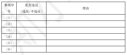 解析 (1)违反。A 注册会计师作为关键审计合伙人的任职时间已经超过五年。 (2)违反。A 注册会计师的父亲不应在对审计客户拥有控制性权益的实体中拥有直接经济利益,否则将因自身利益对独立性产生严重不利影响。 (3)不违反。前任高级合伙人 B 离职已超过 12 个月,不会对独立性产生不利影响。 (4)违反。项目组成员的主要近亲属从不属于银行或类似金融机构取得贷款,将因自身利益对独立性产生严重不利影响。 (5)违反。该内部审计服务涉及承担管理层职责,将因自我评价对独立性产生严重不利影响。 (6)违反。XYZ 公司与丁公司联合推广双方的产品或服务,属于禁止的商业关系。
