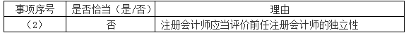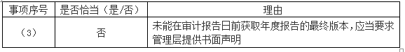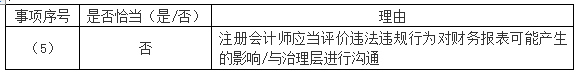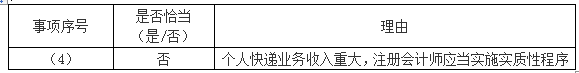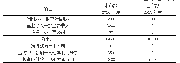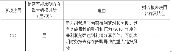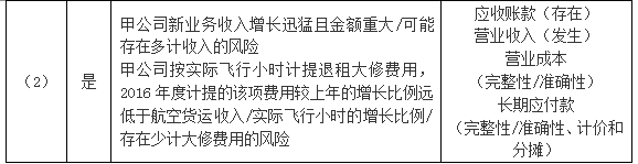 问题 ABC会计师事务所首次接受委托,审计上市公司甲公司2016年度财务报表,委派A注册会计师担任项目合伙人。A注册会计师确定财务报表整体的重要性为1200万元。甲公司主要提供快递物流服务。 要求(1): 针对资料一第(1)至(5)项,结合资料二,假定不考虑其他条件,逐项指出资料一所列事项是否可能表明存在重大错报风险。如果认为可能表明存在重大错报风险,简要说明理由。如果认为该风险为认定层次重大错报风险,说明该风险主要与哪些财务报表项目(仅限于应收账款、预付款项、合同负债、应付职工薪酬、长期应付款、营业收入、营业成本、销售费用、投资收益)的哪些认定相关(不考虑税务影响)。 资料一: A注册会计师在审计工作底稿中记录了所了解的甲公司情况及其环境,部分内容摘录如下: (1)2016年3月,甲公司股东大会批准一项利润分享计划。如2016年度实现净利润较上年度增长20%以上,按净利润增长部分的10%给予管理层奖励。 资料二: A注册会计师在审计工作底稿中记录了甲公司的财务数据,部分内容摘录如下: 金额单位:万元 (2)2015年6月,甲公司开始经营航空快递业务,以经营租赁方式租入2架飞机,租期五年。管理层按实际飞行小时和预计每飞行小时维修费率计提租赁期满退租时的大修费用。2016年1月起,甲公司航空运输服务降价40%,业务出现爆发式增长。 (3)2016年9月,甲公司出资500万元与非关联方乙公司共同投资设立丙公司,持有其45%股权,并按持股比例享有其净资产。丙公司的重大生产经营和财务决策须由股东双方共同作出。甲公司将丙公司作为合营企业核算。 (4)2016年4月,甲公司推出加盟营运模式。一次性收取加盟费50万元,提供五年加盟期间的培训和网络服务。2016年度甲公司共收到加盟费3000万元。 (5)2016年6月,甲公司向丁公司预付1000万元用于某部电影拍摄,不享有收益权和版权。丁公司承诺在该电影中植入三分钟甲公司广告,如该电影不能上映,全额退款。2017年1月,该电影已取得发行放映许可证,将于2017年春节上映。 资料三: A注册会计师在审计工作底稿中记录了审计计划,部分内容摘录如下: 要求(2) (2)针对资料三第(1)至(4)项,假定不考虑其他条件,逐项指出审计计划的内容是否恰当。如不恰当,简要说明理由。 (1)A注册会计师拟与治理层沟通计划的审计范围和时间安排,为避免损害审计的有效性,沟通内容不包括识别出的重大错报风险以及应对措施。 (2)A注册会计师评价认为前任注册会计师具备专业胜任能力,因此,拟通过查阅其审计工作底稿,获取与非流动资产和非流动负债期初余额相关的审计证据。 (3)甲公司应收账款会计每月末向排名前10位的企业客户寄送对账单,并调查回函差异。因该控制仅涉及一小部分应收账款余额,A注册会计师拟不测试该控制,直接实施实质性程序。 (4)甲公司的个人快递业务交易量巨大,单笔金额较小。因无法通过实施细节测试获取充分、适当的审计证据,也无法有效实施实质性分析程序,A注册会计师拟在审计该类收入时全部依赖控制测试。 资料四: A注册会计师在审计工作底稿中记录了实施的进一步审计程序,部分内容摘录如下: 要求(3) (3)针对资料四第(1)至(5)项,假定不考虑其他条件,逐项指出A注册会计师的做法是否恰当。如不恰当,简要说明理由。 (1)在采用审计抽样测试甲公司付款审批控制时,A注册会计师确定总体为2016年度的所有付款单据,抽样单元为单张付款单据,选取2016年12月26日至12月31日的全部付款单据共计80张作为样本,测试结果满意。 (2)甲公司收入交易高度依赖信息系统。ABC事务所的信息技术专家对甲公司信息技术一般控制和与收入相关的信息技术应用控制进行了测试,结果满意。 (3)甲公司2016年末应收票据余额重大。A注册会计师于2016年12月31日检查了这些票据的复印件,并核对了相关信息,结果满意。 (4)甲公司的某企业客户利用甲公司的快递服务,向A注册会计师寄回了询证函回函。A注册会计师认为回函可靠性受到影响,重新发函并要求该客户通过其他快递公司寄回询证函。 (5)A注册会计师发现甲公司未与部分快递员签订劳动合同且未缴纳社保金。管理层解释系快递员流动频繁所致。A注册会计师检查了甲公司人事部门的员工入职和离职记录,认为解释合理,未再实施其他审计程序。 资料五: A注册会计师在审计工作底稿中记录了审计完成阶段的工作,部分内容摘录如下: 要求(4) (4)针对资料五第(1)至(3)项,假定不考虑其他条件,逐项指出A注册会计师的做法是否恰当。如不恰当,简要说明理由。 (1)甲公司2016年末的一项重大未决诉讼在审计报告日前终审结案,管理层根据判决结果调整了2016年度财务报表。A注册会计师检查了法院判决书以及甲公司的账务处理和披露,结果满意,未再实施其他审计程序。 (2)因仅实施替代程序无法获取充分、适当的审计证据,A注册会计师就一份重要的询证函通过电话与被询证方确认了函证信息并被告知回函已寄出,于当日出具了审计报告。A注册会计师于次日收到回函,结果满意。 (3)A注册会计师未能在审计报告日前获取甲公司2016年年度报告的最终版本,因此,未要求管理层提供有关其他信息的书面声明。