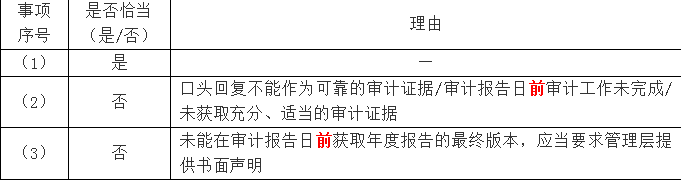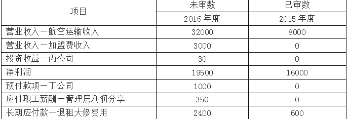 问题 ABC会计师事务所首次接受委托,审计上市公司甲公司2016年度财务报表,委派A注册会计师担任项目合伙人。A注册会计师确定财务报表整体的重要性为1200万元。甲公司主要提供快递物流服务。 资料一: A注册会计师在审计工作底稿中记录了所了解的甲公司情况及其环境,部分内容摘录如下: (1)2016年3月,甲公司股东大会批准一项利润分享计划。如2016年度实现净利润较上年度增长20%以上,按净利润增长部分的10%给予管理层奖励。 (2)2015年6月,甲公司开始经营航空快递业务,以经营租赁方式租入2架飞机,租期五年。管理层按实际飞行小时和预计每飞行小时维修费率计提租赁期满退租时的大修费用。2016年1月起,甲公司航空运输服务降价40%,业务出现爆发式增长。 (3)2016年9月,甲公司出资500万元与非关联方乙公司共同投资设立丙公司,持有其45%股权,并按持股比例享有其净资产。丙公司的重大生产经营和财务决策须由股东双方共同作出。甲公司将丙公司作为合营企业核算。 (4)2016年4月,甲公司推出加盟营运模式。一次性收取加盟费50万元,提供五年加盟期间的培训和网络服务。2016年度甲公司共收到加盟费3000万元。 (5)2016年6月,甲公司向丁公司预付1000万元用于某部电影拍摄,不享有收益权和版权。丁公司承诺在该电影中植入三分钟甲公司广告,如该电影不能上映,全额退款。2017年1月,该电影已取得发行放映许可证,将于2017年春节上映。 资料二: A注册会计师在审计工作底稿中记录了甲公司的财务数据,部分内容摘录如下: 金额单位:万元 要求: (1)针对资料一第(1)至(5)项,结合资料二,假定不考虑其他条件,逐项指出资料一所列事项是否可能表明存在重大错报风险。如果认为可能表明存在重大错报风险,简要说明理由,并说明该风险主要与哪些财务报表项目的哪些认定相关(不考虑税务影响)。 资料三: A注册会计师在审计工作底稿中记录了审计计划,部分内容摘录如下: (1)A注册会计师拟与治理层沟通计划的审计范围和时间安排,为避免损害审计的有效性,沟通内容不包括识别出的重大错报风险以及应对措施。 (2)A注册会计师评价认为前任注册会计师具备专业胜任能力,因此,拟通过查阅其审计工作底稿,获取与非流动资产和非流动负债期初余额相关的审计证据。 (3)甲公司应收账款会计每月末向排名前10位的企业客户寄送对账单,并调查回函差异。因该控制仅涉及一小部分应收账款余额,A注册会计师拟不测试该控制,直接实施实质性程序。 (4)甲公司的个人快递业务交易量巨大,单笔金额较小。因无法通过实施细节测试获取充分、适当的审计证据,也无法有效实施实质性分析程序,A注册会计师拟在审计该类收入时全部依赖控制测试。 要求: (2)针对资料三第(1)至(4)项,假定不考虑其他条件,逐项指出A注册会计师的做法是否恰当。如不恰当,简要说明理由。 资料四: A注册会计师在审计工作底稿中记录了实施的进一步审计程序,部分内容摘录如下: (1)在采用审计抽样测试甲公司付款审批控制时,A注册会计师确定总体为2016年度的所有付款单据,抽样单元为单张付款单据,选取2016年12月26日至12月31日的全部付款单据共计80张作为样本,测试结果满意。 (2)甲公司收入交易高度依赖信息系统。ABC事务所的信息技术专家对甲公司信息技术一般控制和与收入相关的信息技术应用控制进行了测试,结果满意。 (3)甲公司2016年末应收票据余额重大。A注册会计师于2016年12月31日检查了这些票据的复印件,并核对了相关信息,结果满意。 (4)甲公司的某企业客户利用甲公司的快递服务,向A注册会计师寄回了询证函回函。A注册会计师认为回函可靠性受到影响,重新发函并要求该客户通过其他快递公司寄回询证函。 (5)A注册会计师发现甲公司未与部分快递员签订劳动合同且未缴纳社保金。管理层解释系快递员流动频繁所致。A注册会计师检查了甲公司人事部门的员工入职和离职记录,认为解释合理,未再实施其他审计程序。 要求: (3)针对资料四第(1)至(5)项,假定不考虑其他条件,逐项指出A注册会计师的做法是否恰当。如不恰当,简要说明理由。 资料五: A注册会计师在审计工作底稿中记录了审计完成阶段的工作,部分内容摘录如下: (1)甲公司2016年末的一项重大未决诉讼在审计报告日前终审结案,管理层根据判决结果调整了2016年度财务报表。A注册会计师检查了法院判决书以及甲公司的账务处理和披露,结果满意,未再实施其他审计程序。 (2)因仅实施替代程序无法获取充分、适当的审计证据,A注册会计师就一份重要的询证函通过电话与被询证方确认了函证信息并被告知回函已寄出,于当日出具了审计报告。A注册会计师于次日收到回函,结果满意。 (3)A注册会计师未能在审计报告日前获取甲公司2016年年度报告的最终版本,因此,未要求管理层提供有关其他信息的书面声明。 要求: (4)针对资料五第(1)至(3)项,假定不考虑其他条件,逐项指出A注册会计师的做法是否恰当。如不恰当,简要说明理由。