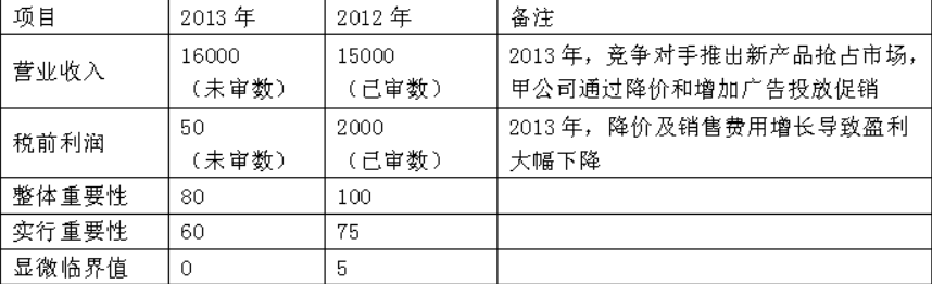 上市公司甲公司是 ABC 会计师事务所的常年审计客户,A 注册会计师负责审计甲公司 2013 年度财务报表,审计工作底稿中与确定重要性和评估错报相关的部分...