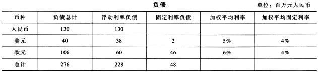 (1)乙公司市场风险的主要来源:第一,利率风险。由于乙公司存在浮动汇率的负债,因此利率的变化会产生市场风险。第二,汇率风险。如果没有对应币种的外币资产以对冲外币负债,又没有进行套期保值的话,那么外币负债的敞口将形成外汇风险。