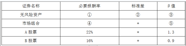假设资本资产定价模型成立,表中的数字是相互关联的。求出表中①~⑤位置的数字。注:表内的“*”为省略的数值。