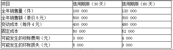A企业目前采用30天按发票金额(即无现金折扣)付款的信用政策,拟将信用期限放宽至60天,仍按发票金额付款。假设等风险投资的最低报酬率为15%,其他有关数据...