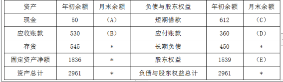 解析 (1)公司的目标现金余额为50万元,则:A=50(万元)   (2)B=1000×10%+650×80%=620(万元)   (3)3月份新增短期借款=50-30=20(万元),则:C=612+20=632(万元)   (4)D=750×60%=450(万元)   (5)E=1539+90=1629(万元)
