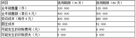 A企业目前采用30天按发票金额(即无现金折扣)付款的信用政策,拟将信用期限放宽至60天,仍按发票金额付款。假设等风险投资的最低报酬率为15%,其他有关数据...