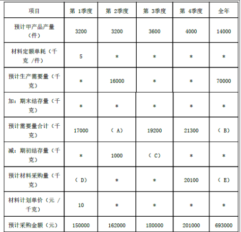 E公司只产销一种甲产品,甲产品只消耗乙材料。 2019年第 4季度按定期预算法编制 2020年的企业预算,部分预算资料如下:资料一:乙材料 2020年...