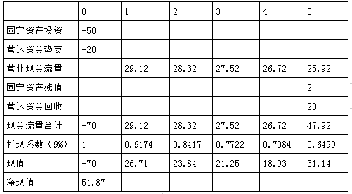 解析 1.年折旧=(50-2)/5=9.6(万元) 2. 3.因为两个方案寿命期不同,因此,需要采用年金净流量法。(0.5分) 甲方案年金净流量=51.87/3.8897=13.34 乙方案年金净流量=75/4.4859=16.72 由于乙方案年金净流量大于甲方案,故乙方案优于甲方案。(0.5分)