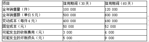 问题 某公司目前采用30天按发票金额(即无现金折扣)付款的信用政策,拟将信用期间放宽至60天,仍按发票金额付款。假设等风险投资的最低报酬率为15%,其他有关数据见表。     信用期决策数据 要求:   (1)计算增加的盈利   (2)计算增加的成本费用   (3)计算增加的税前损益   (4)选择信用政策