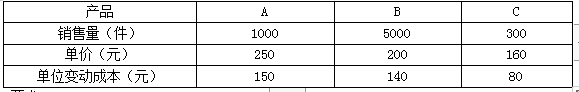 丙公司2020年计划生产销售A、B、C三种产品,预计将发生固定成本总额200000元,三种产品预计产销情况如下:要求:(1)使用加权平均法进行...