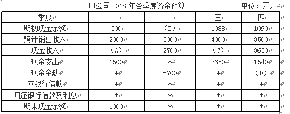 甲公司编制资金预算的相关资料如下:资料一:甲公司预计2018年每季度的销售收入中,有70%在本季度收到现金,30%在下一季度收到现金,不存在坏账。20...