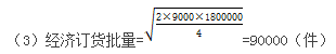 解析 (1)每次订货变动成本=(80-26)×10000/60=9000(元) (2)单位变动储存成本=1+50×6%=4(元/件) 每年最佳订货次数=1800000/90000=20(次) 最佳订货周期=360/20=18(天) (4)每日平均需用量=1800000/360=5000(件) 再订货点=5×5000=25000(件)。