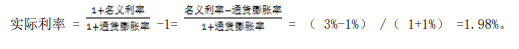 问题 已知银行存款利率为 3%,通货膨胀率为 1%,则实际利率为(  )。