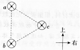 问题 如图,等边三角形顶点a、b、c处各有一条长直导线垂直穿过纸面,导线中通有等大恒定电流,则c导线所受安培力的方向是()。
