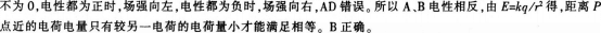 选项 A、B的直线,P是直线上的一点,若P点的场强为0,则(  )。