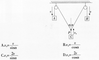 如图.物块A、B以相同速率v下降,物块C以vx上升,绳与竖直方向成α角时,vx与v满足()。
