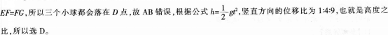 问题 如图2所示,三个小球a、b、c分别在距离地面不同的高度危h1、h2,h3处同时以相同的速度向左水平抛出,不计空气阻力,三个小球每隔相同的时间间隔依次落到水平地面,小球。落到水平地面D点,DE=EF=FG,则下列说法正确的是( )。