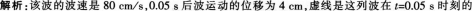 问题 如图所示,实线是沿x轴传播的一列简谐横波在t=0时刻的波形图,虚线是这列波在t=0.05s时刻的波形图。已知该波的波速是80cm/s,则下列说法中正确的是(  )。