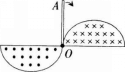 如图所示,纸平面内两个半径均为R的半圆相切于0点.半圆形区域内分别存在垂直纸面的匀强磁场,磁感应强度大小相等、方向相反.一长为2R的导体杆OA绕过0点且垂...