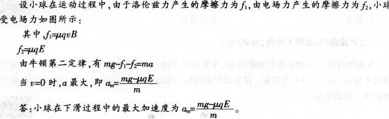 问题 案例:某同学对一道习题的解答如下: 题目:如图所示,空间有水平向右的匀强电场E与垂直纸面向外的匀强磁场B。竖直固定的绝缘长杆上套有一个带正电的小球,带电量为q、质量为m,小球和杆间的动摩擦因数为μ,且mg>μqE。现使小球由静止释放,求小球在下滑过程中的最大加速度。 问题: (1)指出学生答题的错误,分析答错的可能原因;(5分) (2)设计一个教学片段,帮助学生正确分析和解答该习题。(15分)