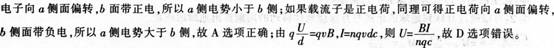 选项 A.若霍尔元件的载流子是正电荷,a侧电势高于b侧 B.若霍尔元件的载流子是负电荷,a侧电势高于b侧 C.无论霍尔元件的载流子是正、负电荷。a侧电势均高于b侧 D.霍尔元件给定后,霍尔电压反比于磁感应强度B和通人的电流,的大小