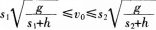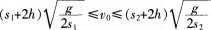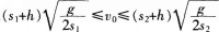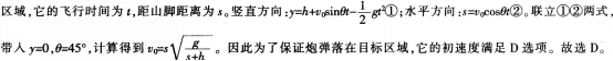 问题 某部队在山顶上进行炮弹射击训练,如图所示, 炮台距地面高度AO为h,炮弹射击方向与水平面成450。水平地面上有一目标区域,它的左端距O点的距离BO为s1,右端距O点的距离C0为s2。为了保证炮弹击中目标区域,炮弹初速度V0应满足什么条件 ( )