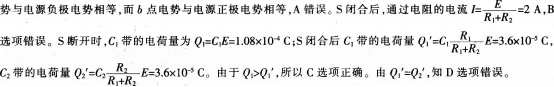 如图所示,C1=6μF,C2=3μF,R1=3Ω,R2=6Ω,电源电动势E=18 V, 内阻不计。下列说法正确的是()。 A.开关S断开时.a