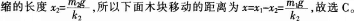 问题 如图所示,两木块的质量分别为m1和m2,两轻质弹簧的劲度系数分别为k1和k2,上面木块压在上面的弹簧上(但不拴接),整个系统处于平衡状态,现缓慢向上提上面的木块,直到它刚离开上面弹簧,在这过程中下面木块移动的距离为( )。