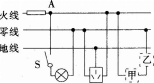 选项 A.电冰箱接入三孔插座后电灯与电冰箱是串联 B.电冰箱的三脚插头接入电路能保证其外壳接地 C.为用电安全,应在甲处安装电灯,乙处安装开关 D.站在地上的人若用手直接接触A点.没有触电危险
