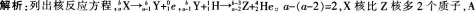 三个原子X、Y、Z,X核放出一个正电子后变成Y核,Y核与质子发生核反应后生成Z核,并放出一个氦(He),则可知( )。A.X核比2核多一个质子 B.X...