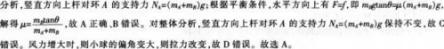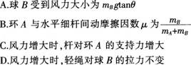 水平细杆上套一环A,环A与球B之间用一轻绳相连。质量分别是mA、mB,由于受到水平风力的作用,轻绳与竖直方向成θ角,环A与球B一起向右匀速运动,下列说法正...