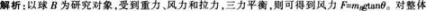 问题 水平细杆上套一环A,环A与球B之间用一轻绳相连。质量分别是mA、mB,由于受到水平风力的作用,轻绳与竖直方向成θ角,环