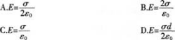 问题 已知厚度为d的无限大带电导体平板,两表面上电荷均匀分布.电荷面密度均为σ,如图所示,则板外两侧的电场强度的大小为(  )。