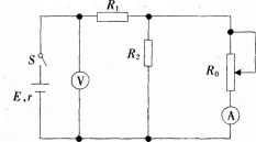 在图中所示的电路中,当滑动变阻器的滑动触片由下至上移动时()。 A.伏特表V和安培表A的读数都减小 B.伏特表V和安培表A的读数都增大 C....