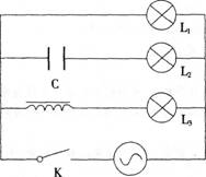 解析 (1)电感器对交流的阻碍作用的大小用感抗表示。实验和理论分析都表明,线圈的自感系数越大、交流的频率越高,电感对交流的阻碍作用就越大,也就是说,线圈的感抗就越大。电容器对交流阻碍作用的大小用容抗表示。实验和理论分析都表明,电容器的电容越大,交流的频率越高,电容器对交流的阻碍作用就越小,也就是说,电容器的容抗就越小。 (2)教学设计如下: 一、教学目标 (一)知识与技能 (1)了解电感器和电容器对交变电流的导通和阻碍作用。 (2)定性了解电感器和电容器对交变电流阻碍作用的大小与什么因素有关。 (二)过程与方法 (1)通过探究实验,尝试应用科学的方法研究物理问题,认识物理实验在物理学发展过程中的作用。 (2)通过探究感抗和容抗的大小由哪些因素有关,获得实验探究过程的体验,培养学生分析、解决问题的能力。 (三)情感、态度与价值观 (1)通过实验的互动过程,诱发对探究物理规律的兴趣。 (2)通过学习过程中,培养学生主动与他人合作的精神,具有团队精神;通过真实记录观察到的现象,体验实事求是的科学态度。 二、教学重点 电感和电容对交变电流的影响。 三、教学难点 容抗和感抗的大小与哪些因素有关。 四、教学资源 五、教学过程 【新课讲授】 [对比实验]现在我们有三个小灯泡,让它们并联接入交流电路中,可以观察到三个灯泡的亮度相同,说明这是三个相同的灯泡。 现在我们在其中的一个支路中串联一个电容,在另一个支路中串联一个电感。再将它们接入直流电路中。 会有什么现象 现象:没有串联任何器件的灯泡马上变亮,串联电容器的灯泡不亮,串联电感线圈的灯泡慢慢变亮。 说明:电容隔直流.电感通直流。 再将它们接入交流电路中,会有什么现象 现象:没有串联任何器件的灯泡马上变亮.串联电容器的灯泡和串联电感线圈的灯泡都亮,不过亮度比没有串联任何器件的灯泡暗些。 为什么串联了电容器的电路都亮了呢 我们先来看看这幅电路图。将开关往上打,我们会发现电流袁会动一下.原因是电源往电容器充电,将开关往下打,我们会发现电流表也会动一下,原因是电容器放电。若想电路中有持续的电流,则要求电容器不断地充放电。这也就是为什么串联了电容器的电路都亮了。并不是真有电流通过电容器,而是电容器在不断地充放电。 串联电容器的灯泡和串联电感线圈的灯泡比没有串联任何器件的灯泡暗些又说明什么 (说明电容和电感对交流电有阻碍的作用。) 说明:电容通交流,电感阻交流。 我们把电感对交变电流的阻碍作用的大小用感抗来表示。而把电容对交变电流的阻碍作用的大小用容抗来表示。 板书: 感抗:电感对交变电流有阻碍作用,阻碍作用的大小用感抗来表示。 容抗:电容对交变电流有阻碍作用,阻碍作用的大小用容抗来表示。 【猜想】 感抗和容抗的大小和什么因素有关呢 各小组进行猜想。 回答:感抗与自感系数和交变电流的频率有关,原因是自感电动势与自感系数和电流的变化快慢有关,在交变电流中是用频率表示电流变化快慢的。 容抗与感抗类似.所以猜想容抗与电容和交变电流的频率有关。 【实验验证】 将全班分为4大组。分配探究任务: 1.探究自感系数对感抗大小的影响。 2.探究电容对容抗大小的影响。 3.探究交流电的频率对感抗大小的影响。 4.探究交流电的频率对容抗大小的影响。 提供的器材:交流低压电源、信号发生器(可以产生频率不同、电压相同的低压交流电)、小灯泡、电容器、电感器、多用电表、开关、导线若干。 【交流评估】 学生分析实验现象.得出结论,各组选派代表进行交流。 教师启发学生评估各组实验结果。进行总结。 【探究结论】 1.线圈的自感系数越大、交流电的频率越高,电感对交流的阻碍作用越大,即线圈的感抗越大。 2.电容器的电容越大.交流电的频率越高,电容器对交流的阻碍作用越小,即电容器的容抗越小。 【巩固练习】 1.如图所示电路中.三只灯泡的亮度相同,如果交流电的频率增大,三盏灯泡的亮度将如何改变 为什么 2.使用220V交流电源的电气设备和电子仪器,金属外壳和电源之间都有良好的绝缘,但是有时候用手触摸外壳仍会感到“麻手”,用试电笔测试时,氖管发光,这是为什么 【小结】 (1)知识:感抗、容抗的物理意义,影响感抗、容抗大小的因素。 (2)方法:通过探究实验,初步理解物理学的科学探究方法。