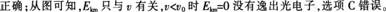 爱因斯坦提出了光量子概念并成功地解释光电效应的规律而获得1921年的诺贝尔物理 频率。从图中可以确定的是(  )。