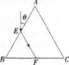 如图所示,有一束平行于等边三棱镜截面ABC的单色光从空气射向E点,并偏折到F点。已知入射方向与边AB的夹角为θ=30。,E、F分别为边AB、BC的中点,则...