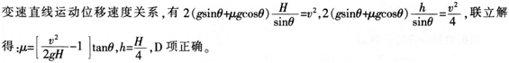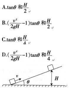 问题 物块沿倾角为0的斜坡向上滑动,当物块的初速度为v时,上升的最大高度为H.如图所示;当物块的初速度为v/2时,上升的最大高度记为h。重力加速度大小为g。物块与斜坡间的动摩擦因数μ和h分别为( )。
