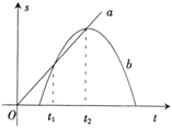 在平直公路上行驶的口车和6车,其位移一时间图象分别为图中直线a和曲线b.由图可知( )。 A.b车运动方向始终不变 B.在t1时刻a车的位移大于b车 ...