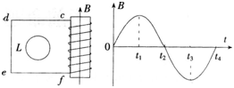 问题 如图所示,螺线管内有平行于轴线的匀强磁场,规定图中箭头所示方向为磁感应强度B的正方向,螺线管与U型导线框c蟛相连,导线框cdef内有一半径很小的金属圆环L,圆环与导线框cdef在同一平面内。当螺线管内的磁感应强度随时间按图示规律变化时( )。