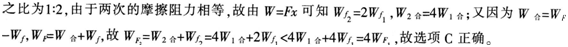 解析 前后两次物体均做匀加速运动,末速度之比为l:2,由于时间相等,则由V=at可知两次运动的加速度之比为l:2,则两次合力之比为1:2,两次的平均速度分别为v/2、v两次的位移