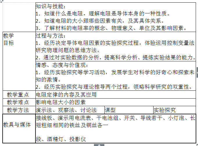 相关内容:材料,根据,要求,教学设计,普通高中物理课程标准(实验),导体的电阻,内容,实验,决定,导线,电阻,因素