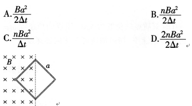 问题 如图所示,一正方形线圈的匝数为n,边长为a,线圈平面与匀强磁场垂直。且一半处在磁场中,在△t时间内,磁感应强度的方向不变.大小由曰均匀地增大到2B.在此过程中.线圈中产生的感应电动势为( )。