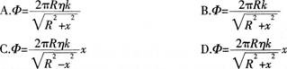问题 图示为一个半径为R的均匀带电圆环,其单位长度带电量为η。取环面中心O为原点,以垂直于环面的轴线为x轴。设轴上任意点P到O点的距离为x,以无限远处为零势能点,P点电势的大小为φ。下面给出φ的四个表达式(式中k为静电力常量),其中只有一个是合理的。你可能不会求解此处的电势φ,但是你可以通过一定的物理分析,对下列表达式的合理性进行判断。根据你的判断,φ的合理表达式应为(  )。