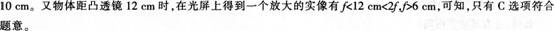 问题 物体距凸透镜20cm时,可在光屏上得到一个缩小的实像,若把物体向透镜方向移8cm,又可在光屏上得到一个放大的实像,则透镜的焦距可能是(  )。