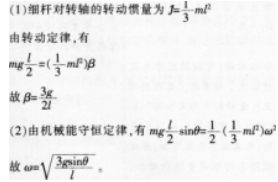 问题 一匀质细杆质量为m,长为Z,可绕过一端0的水平轴自由转动,杆于水平位置由静止开始摆下。求: (1)初始时刻的角加速度; (2)杆转过0角时的角速度。