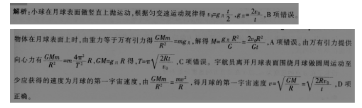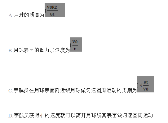 问题 随着我国登月计划的实施,我国宇航员登上月球已不是梦想。假如我国字句并在月球表面附近以初速度秽。竖直向上抛出一个小球,经过时间t后回到出发点半径为R,万有引力常量为G,则下列说法正确的是( )。