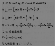 问题 质量为2 k9的物体,在力F=2ti+4t2的作用下由静止从原点开始运动,求: (1)5 S末物体的速度和位置。 (2)5 s内力所做的功。