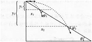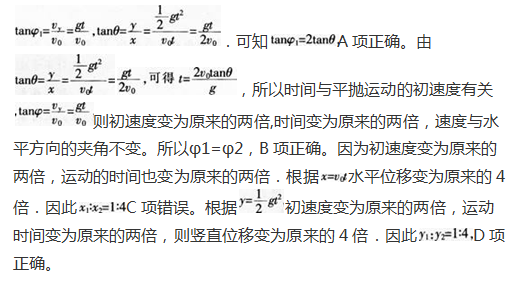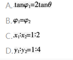 问题 如图所示。一物体自倾角为θ的固定斜面顶端沿水平方向以v0,2v0的水平速度先后两次抛出,抛出后均落在斜面上,物体与斜面接触时速度与水平方向的夹角为φ1、φ2,水平距离为χ1,χ2,下落高度为y1、y2,则下列关系中不正确的是(  )。