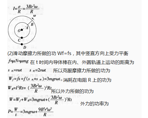 案例: 下面是一道作业题及某学生的解答。 习题:半径分别为r和2r的同心圆形导轨固定在同一水平面内,一长为r、质量为m且质量分布均匀的直导体棒AB置于...